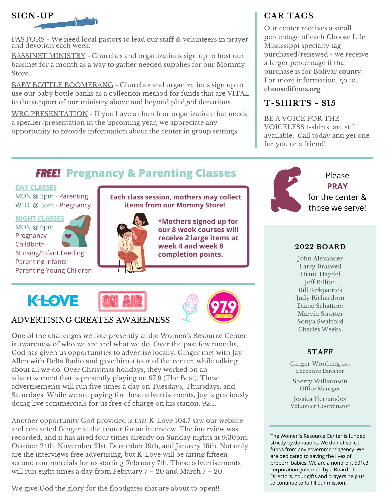 My name is Breanna Jurgenson and I am 19 years old. I have been volunteering at the Women’s Resource Center for almost a year. I love the community and atmosphere that the staff and other volunteers create at the center. It is evident that these sweet ladies have hearts that are eager to share the gospel, lovingly, patiently, and with great understanding and compassion. Whether it is sorting donations or counseling an indecisive mother, everyone here is truly striving to make Christ known in the lives of struggling women, I have seen much growth at the Women’s Resource Center in the short time I have been here, and I am excited to see what the Lord has in store as we carry on this great ministry.